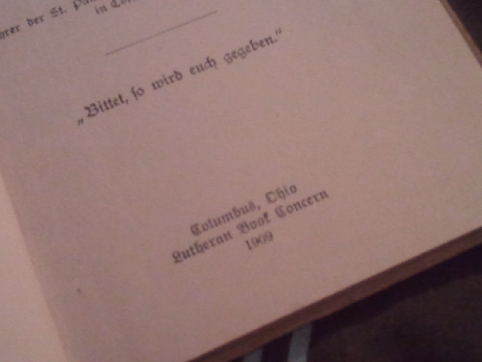 The book is called Prayers for Little Ones (Gebete fuer die Kleinen = Prayers for the small), and it was published in 1909 by the Lutheran Book Concern of Columbus, Ohio.